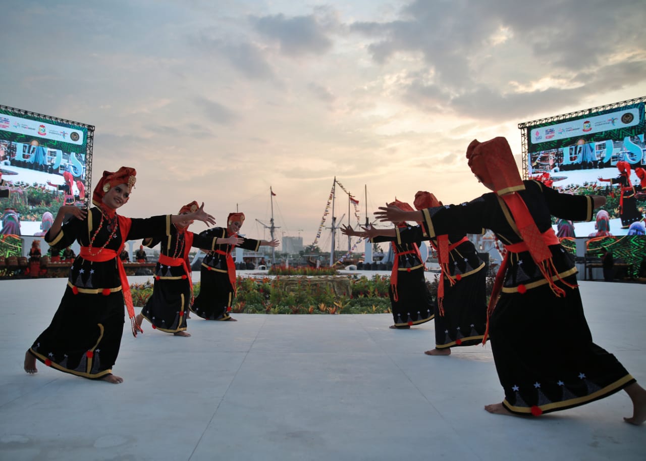 Penampilan puluhan musisi dan penari tradisional ini disaksikan langsung Wali Kota Makassar, Moh. Ramdhan ‘Danny’ Pomanto dan Wagub Sumbar, Audy Joinaldy.