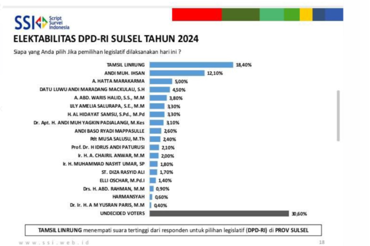 Dalam survei terbaru versi SSI, elektabilitas Al Hidayat Syamsu mendekati petahana Tamsil Linrung, Andi Muh Ihsan, dan Lily Amelia Salurapa.