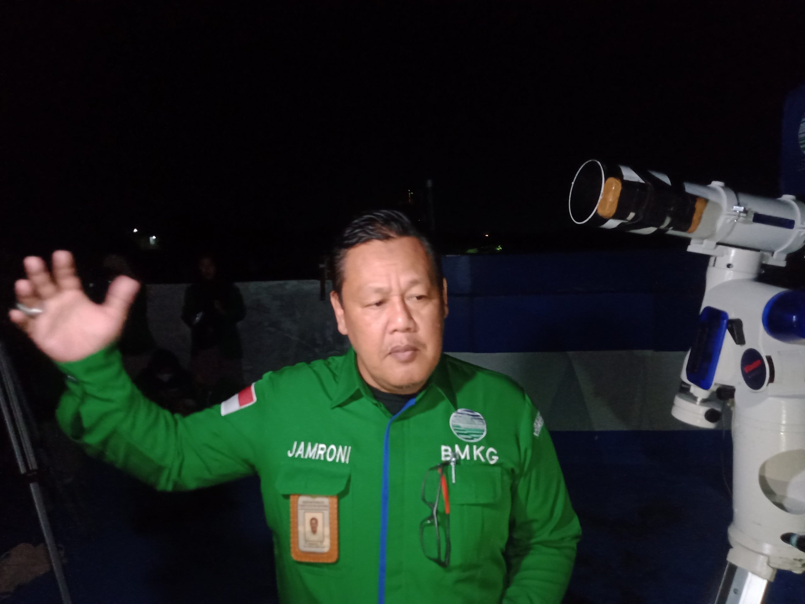 Koordinator Bidang Observasi BMKG Wilayah IV Makassar, Jamroni saat pemantauan Gerhana Bulan di Kantor BMKG Wilayah IV Makassar lantai 4,Jl Prof Abdurrahman Basalamah, Makassar, Selasa (8/11/2022).
