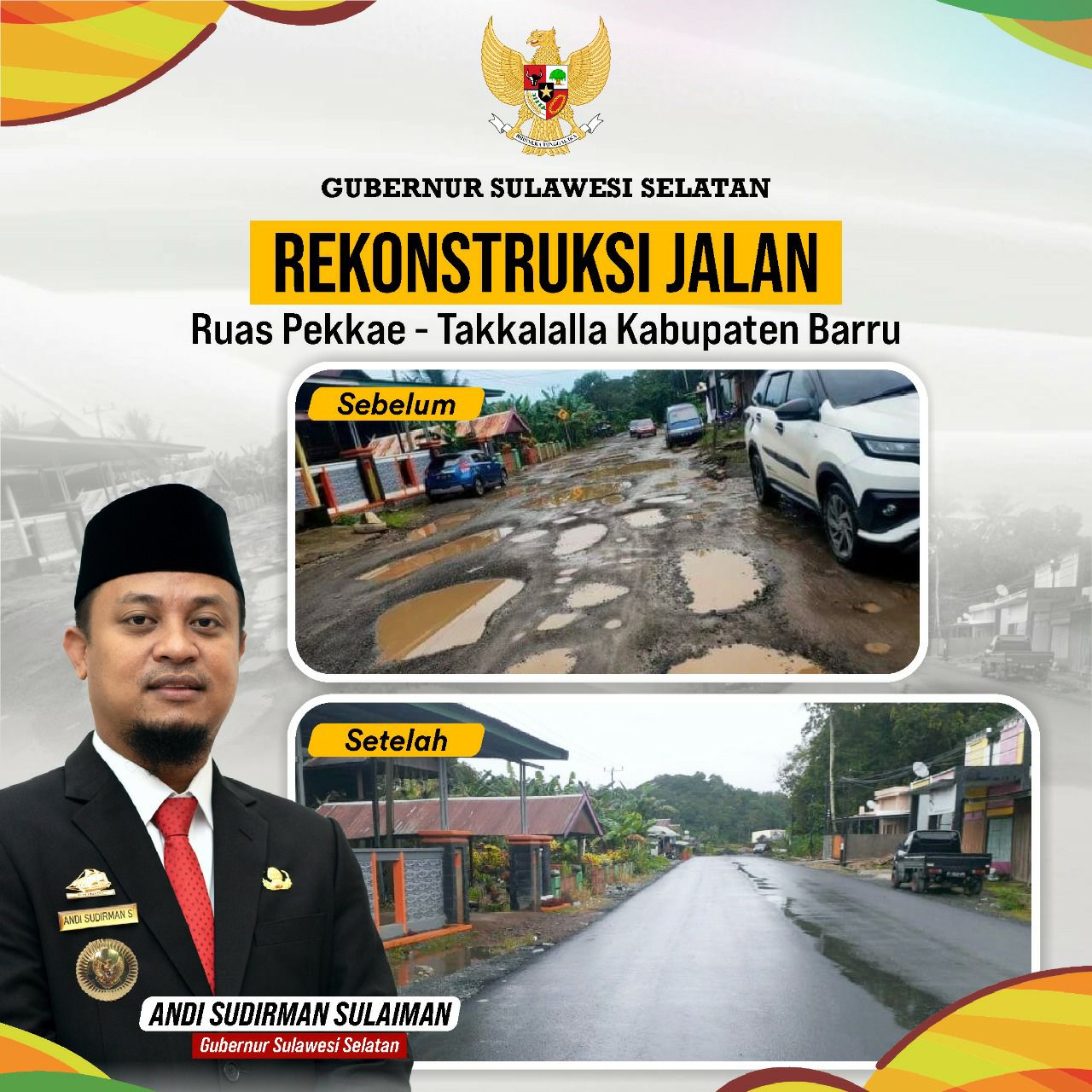 “Alhamdulillah rekonstruksi jalan Lintas Harian Rata-rata Tinggi (LHR) ruas rusak berat Pekkae – Takkalala dalam tahap kontruksi,” kata Gubernur Sulsel, Andi Sudirman Sulaiman.