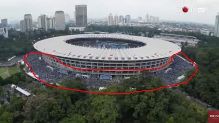 Dari tayangan sejumlah televisi nasional, mass pendukung memadati area lapangan SUGBK.