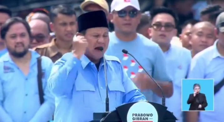 “Saya mohon maaf, yang tidak mampu bertahan silahkan keluar. Kasian kalian berdesak-desakan,” kata Prabowo.