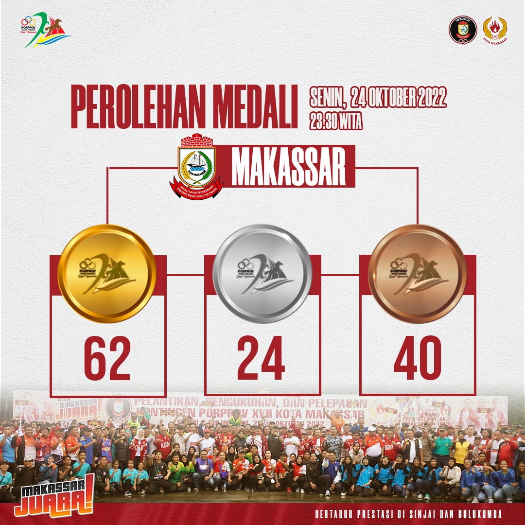 Dari data KONI Makassar yang diperoleh, kontingen Makassar sendiri telah mengemas total 126 medali. Terdiri dari 62 emas, 24 perak dan 40 perunggu.