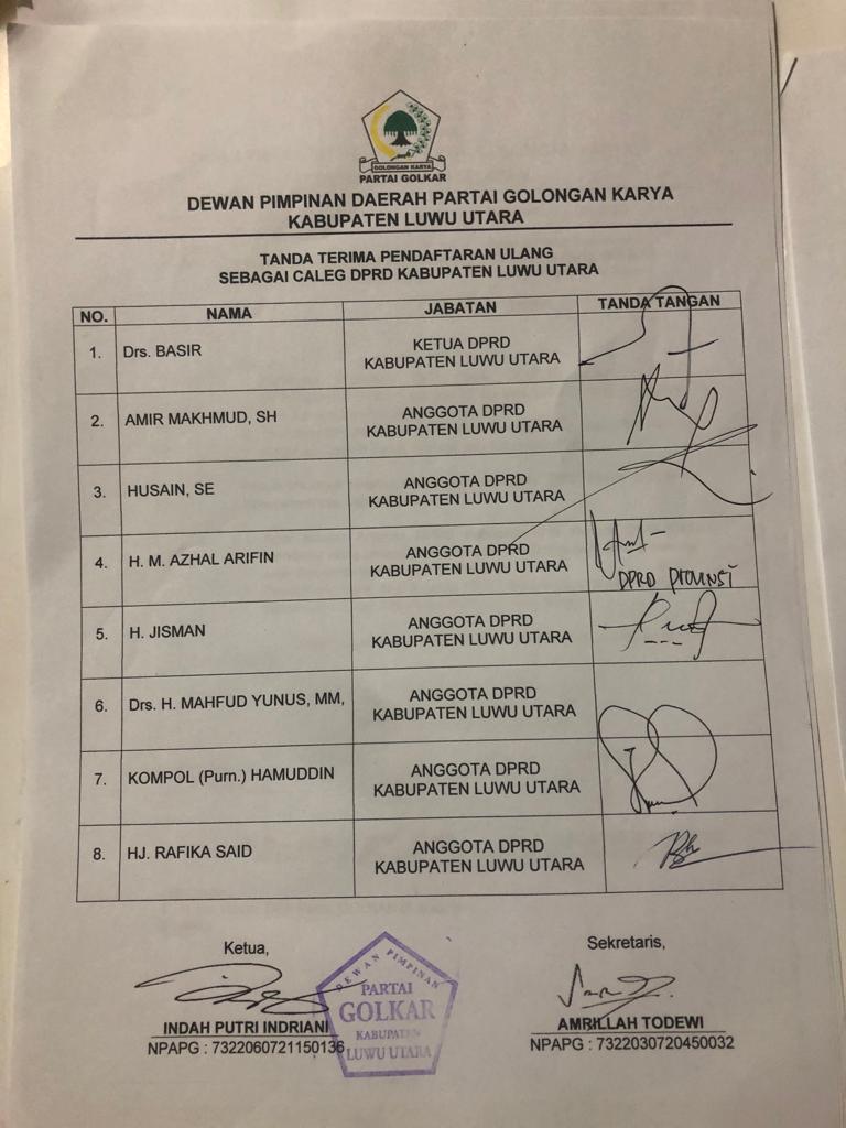 Sebelumnya, Golkar Lutra sempat menemui Mahfud dan pihaknya menolak menandatangani surat pencalegan dari DPD I Golkar Sulsel. Alasannya sudah tidak ingin jadi caleg.